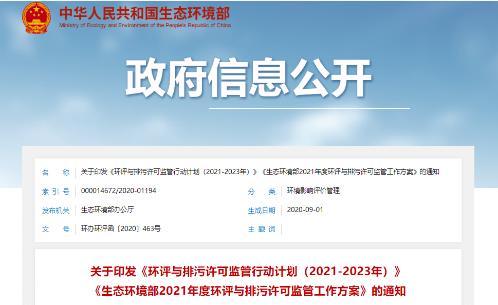 生態(tài)環(huán)境部2021年度環(huán)評(píng)與排污許可監(jiān)管工作方案