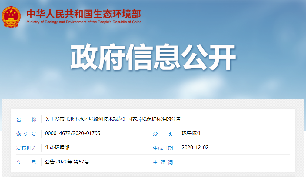 關于發(fā)布《地下水環(huán)境監(jiān)測技術規(guī)范》國家環(huán)境保護標準的公告
